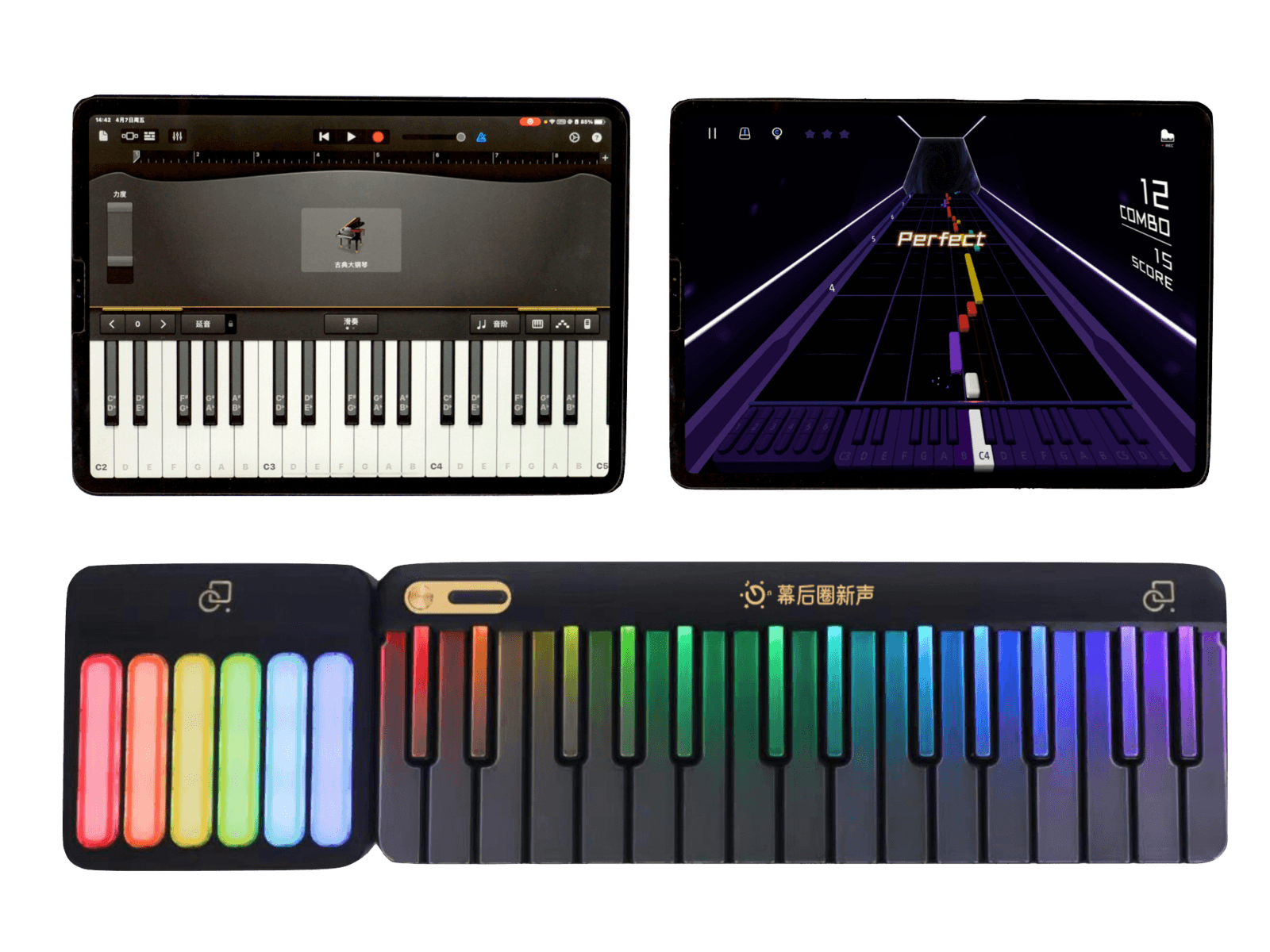 无需音乐基础,带上平板即可上手。其独特的“乐高式”教学让学员在学玩练秀一体之中展示自己,养出兴趣。